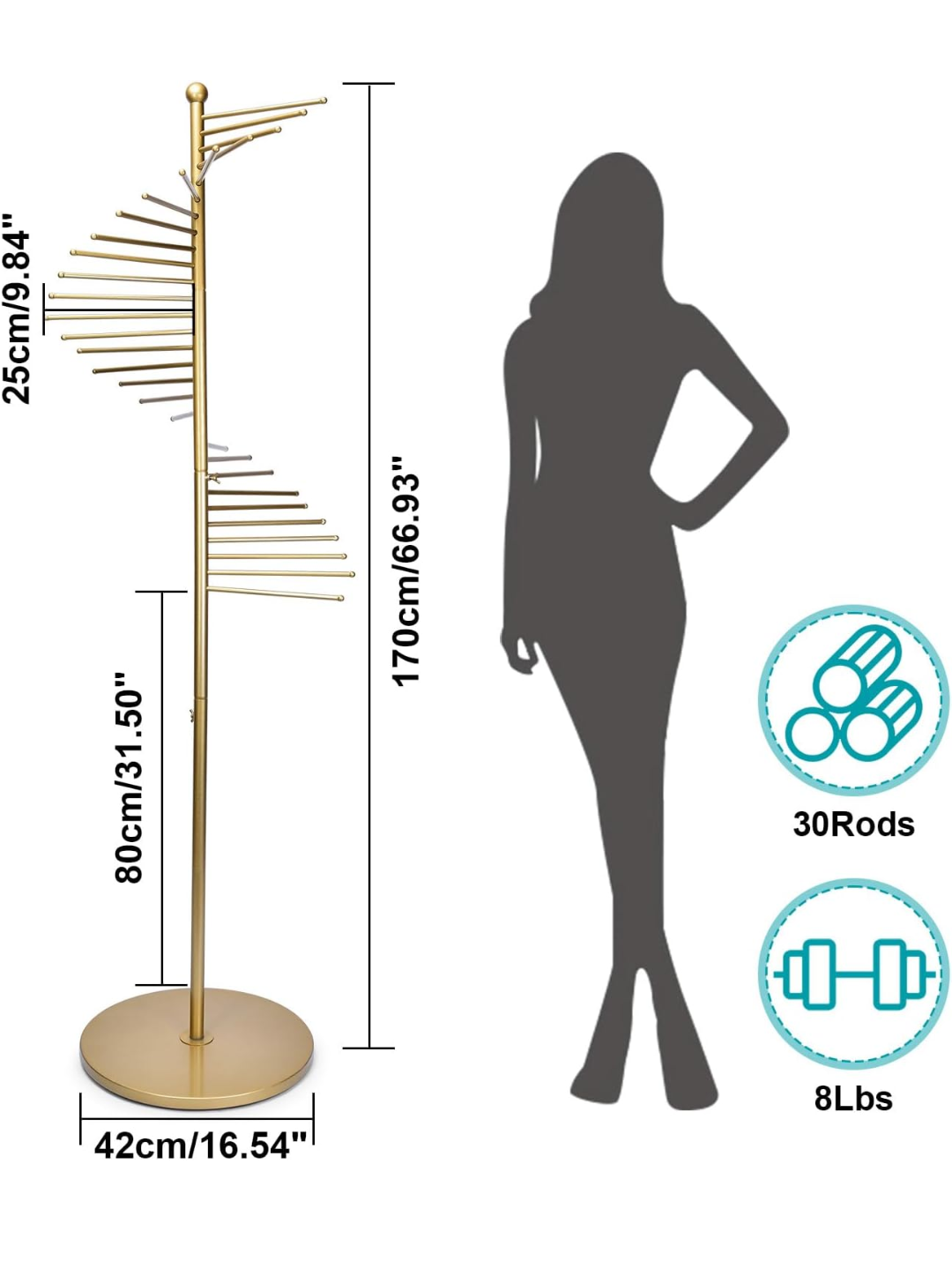 Metal Scarf Rack, Freestanding Spiral Scarf Holder Commercial Hijab Organizer Belt Pants Hanger with 30 Rods for Clothing Store Home,