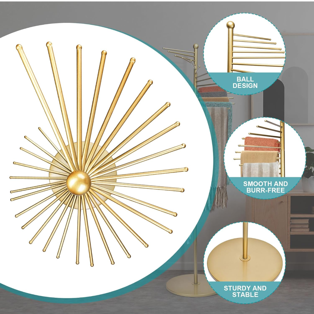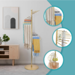 Unlike cheap plastic organizers or wall-mounted hooks, this commercial-grade metal scarf rack is engineered for both beauty and durability. The spiral layout prevents fabric from bunching, making it the go-to choice for hijab collections, silk scarves, and delicate accessories. Whether you’re styling a boutique or organizing a personal wardrobe, this gold hanger rack is the display solution you’ve been looking for.